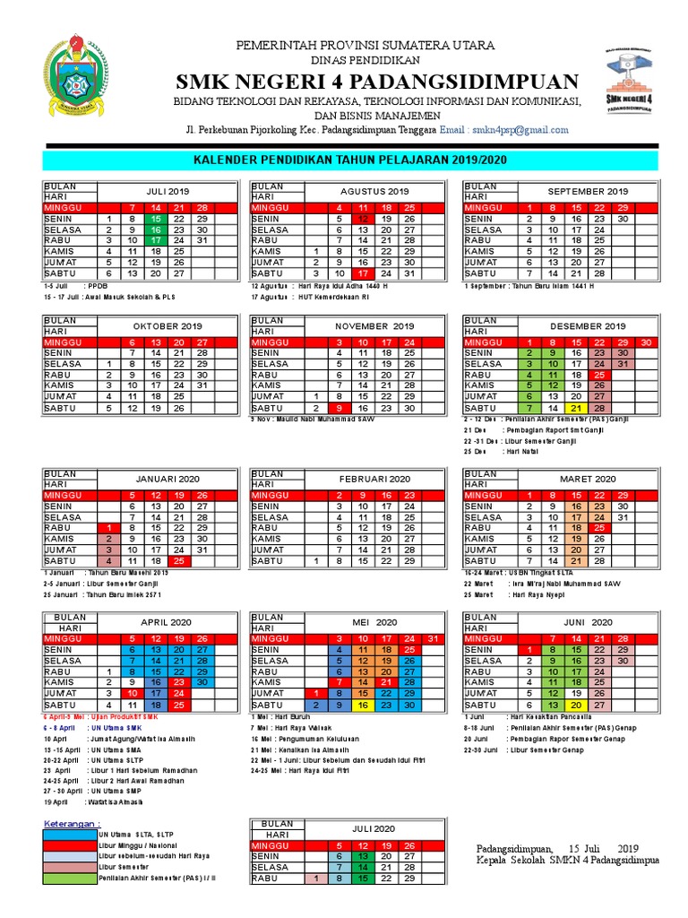 Kalender pendidikan 20192020 sumut. Kaldik ini diperuntukkan bagi semua jenjang pendidikan. Hal ini menyangkut hari efektif sekolah libur semester libur khusus ulangan semester maupun jadwal penerimaan rapor. 35 rows Dinas Pendidikan Pemerintah Provinsi Sumatera Utara Sumut melalui Keputusan Kepala.