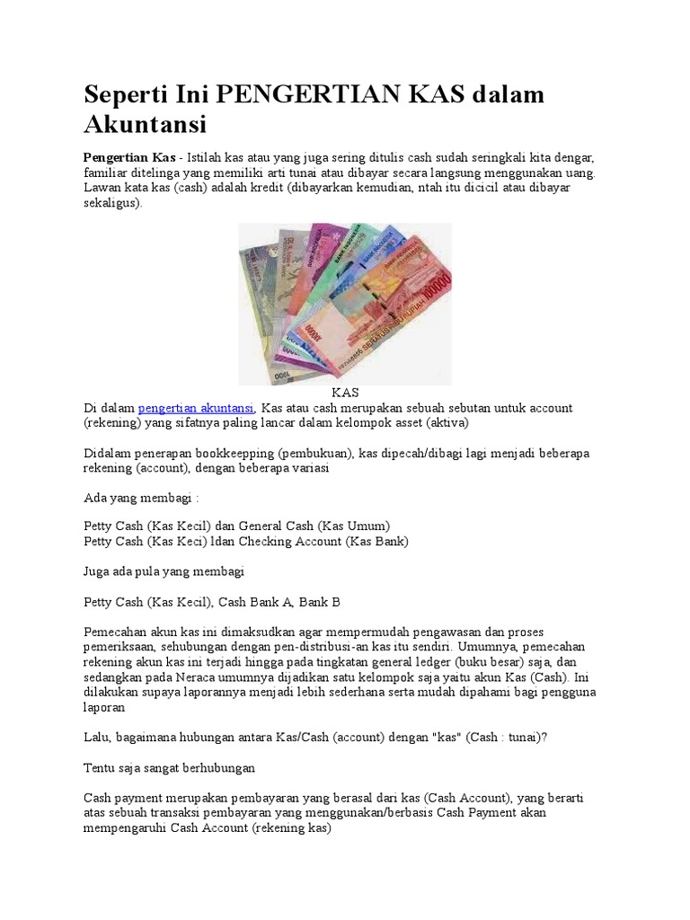 18 Pengertian Kas Menurut Para Ahli Terlengkap