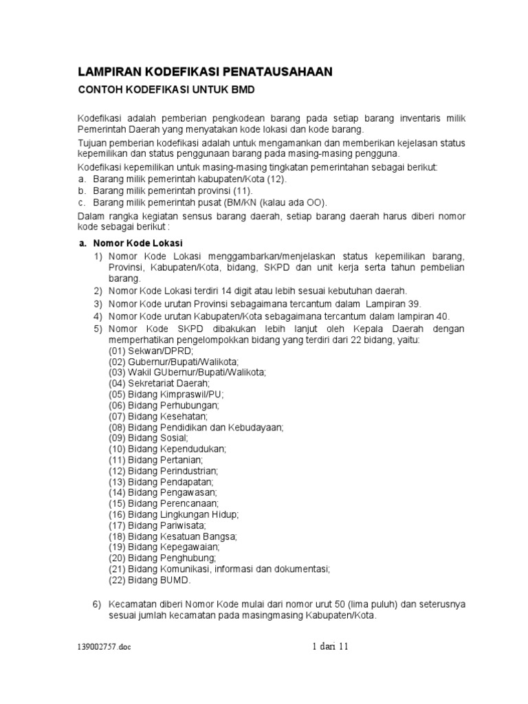 Lampiran Kodefikasi Penatausahaan