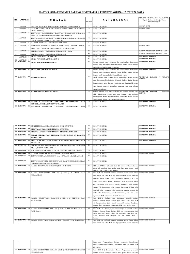 Lampiran kode barang permendagri no 17 tahun 2007. Lampiran 3 Permendagri Nomor 12 Tahun 2007 yang berisi tentang Slideshare uses cookies to improve functionality and performance and to provide you with relevant advertising. Peraturan Kementerian Dalam Negeri Permendagri TENTANG Pedoman Teknis Pengelolaan Barang Milik Daerah. Menimbang bahwa untuk melaksanakan ketentuan pasal 74 ayat 3.