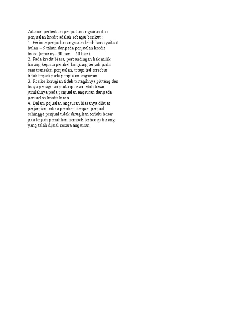 Perbedaan Penjualan Kredit Dan Penjualan Cicilan