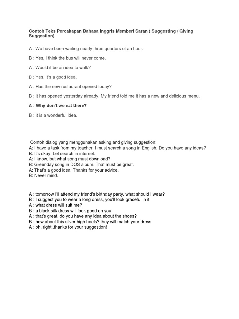 Contoh Teks Percakapan Bahasa Inggris Memberi Saran Tita Pdf Clothing