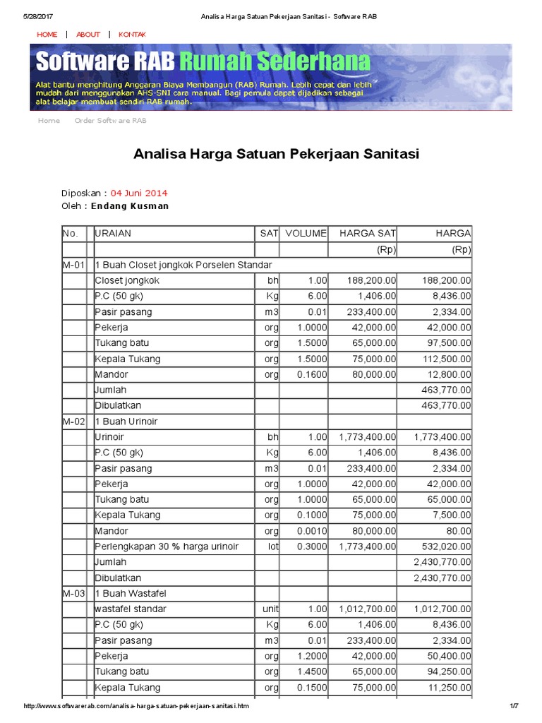 Analisa Harga Satuan Pekerjaan Sanitasi Software Rab