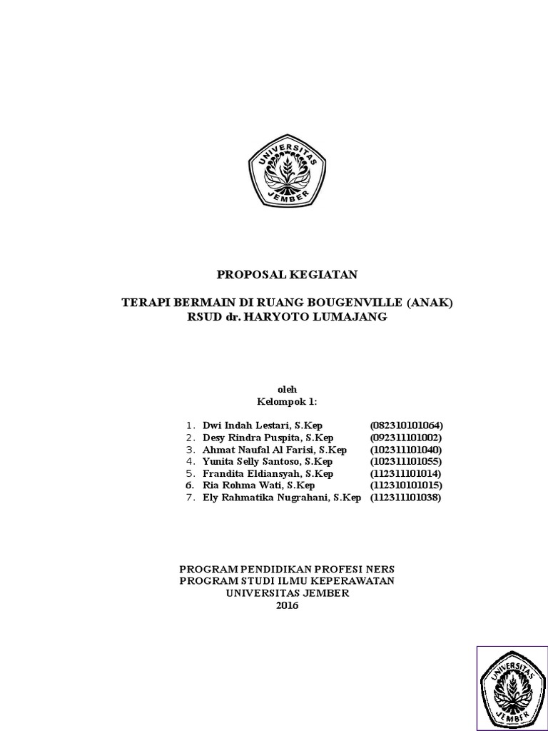 Program studi profesi ners. PROPOSAL PELAKSANAAN PROGRAM TERAPI BERMAIN A. Laporan satuan acara pembelajaran terapi bermain.