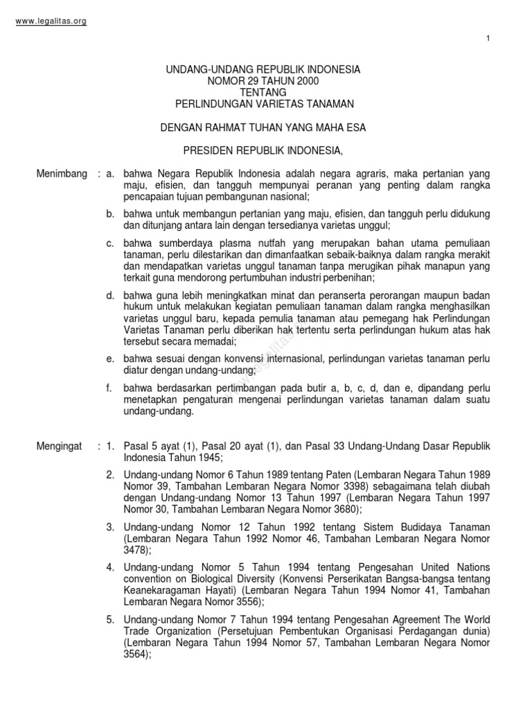 Uu No 29 Tahun 2000 Perlindungan Varietas Tanaman Pdf