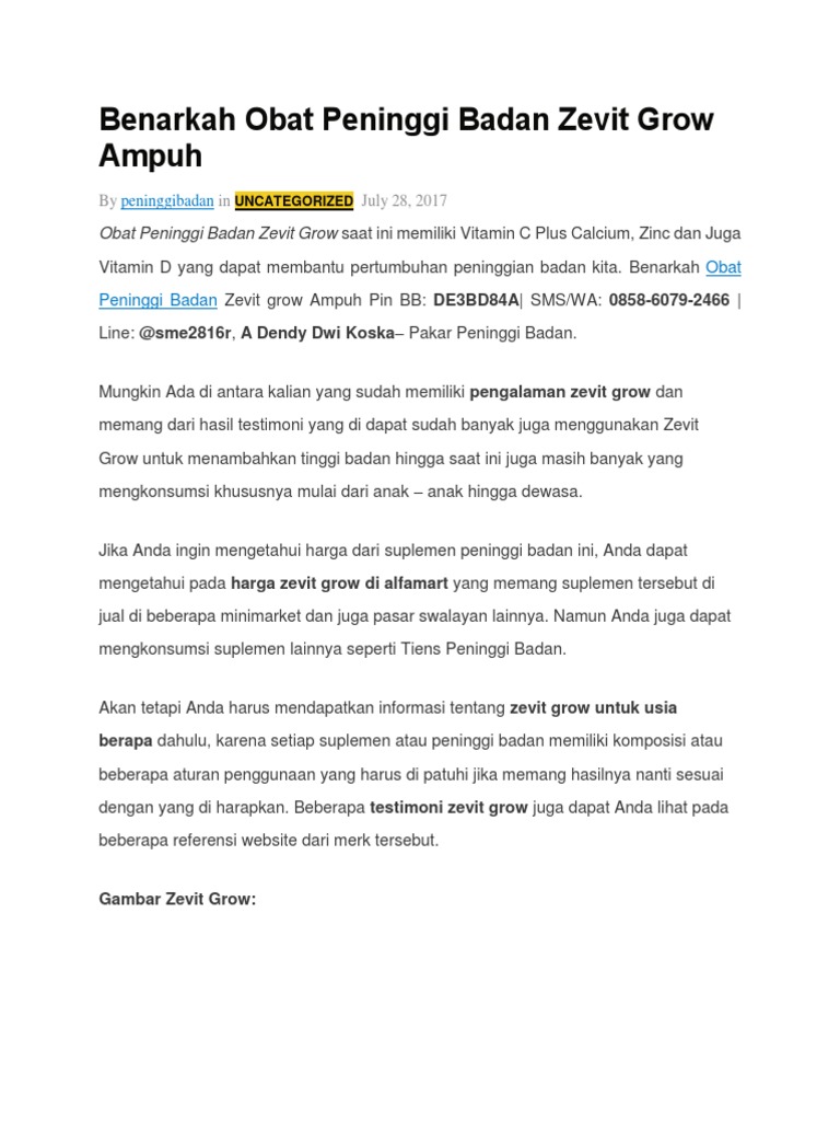 Bila kandungan senyawa ini tak mencukupi badan dapat mengalami suatu penyakit. Suplemen Peninggi Badan Original Herbal Paling Terlaris - ZEVIT GROW. Cara ini bukan tanpa alasan karena seperti yang dikenal bahwa banyak si kecil remaja ataupun dewasa yang bermasalah dengan tinggi badannya.