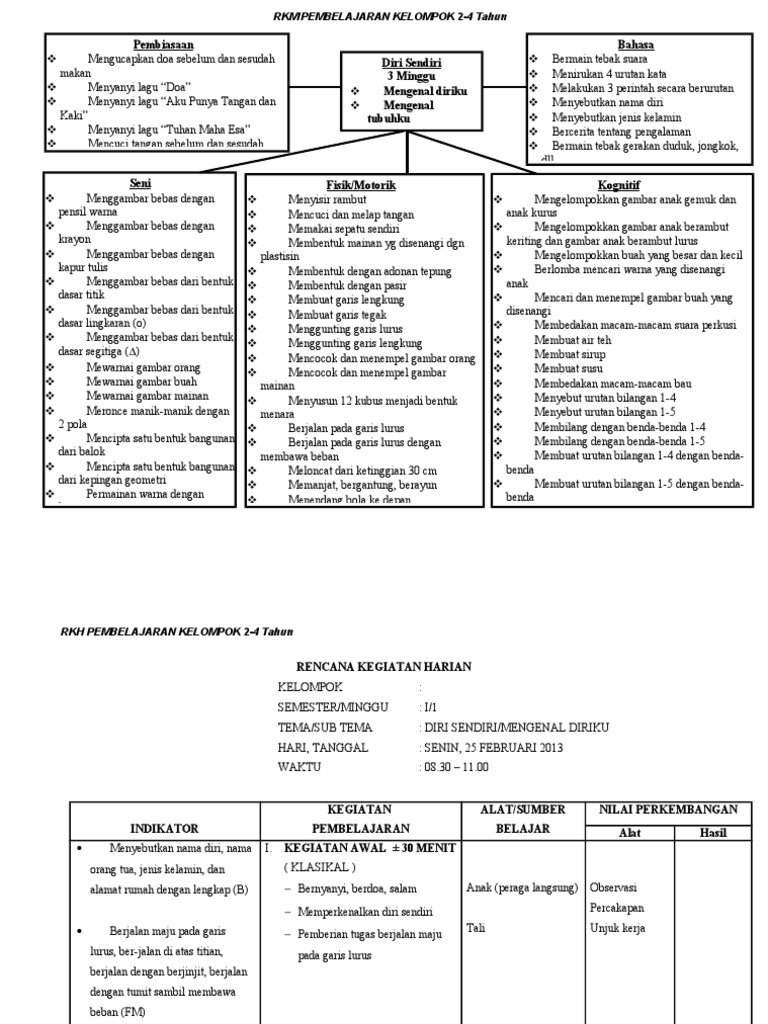 Contoh Rkh Dan Rkm Paud Ra Tk Kurikulum 2013 Rkm 2012 Semester 2