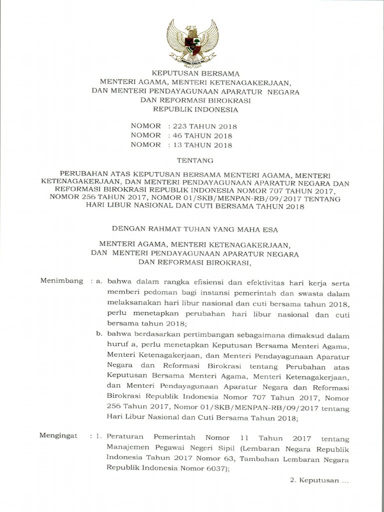 Bahwa dengan ditetapkannya cuti bersama tahun 2017 berdasarkan Keputusan Presiden Nomor 18 Tahun 2017 ten tang Cuti Bersama Tahun 2017. PERSYARATAN UNTUK MENJADI KUASA HUKUM PADA PENGADILAN PAJAK. PERATURAN MENTERI KEUANGAN REPUBLIK INDONESIA.