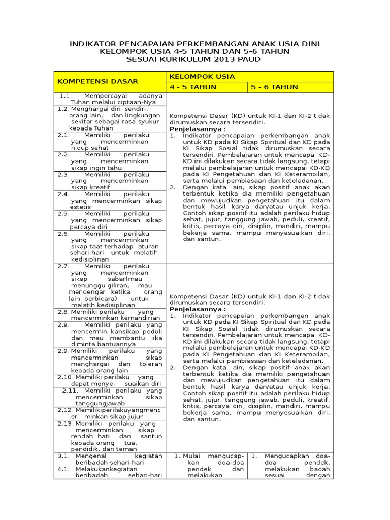 Indikator Paud Usia 5 6 Tahun Kurikulum 2013 Tentang Tahun