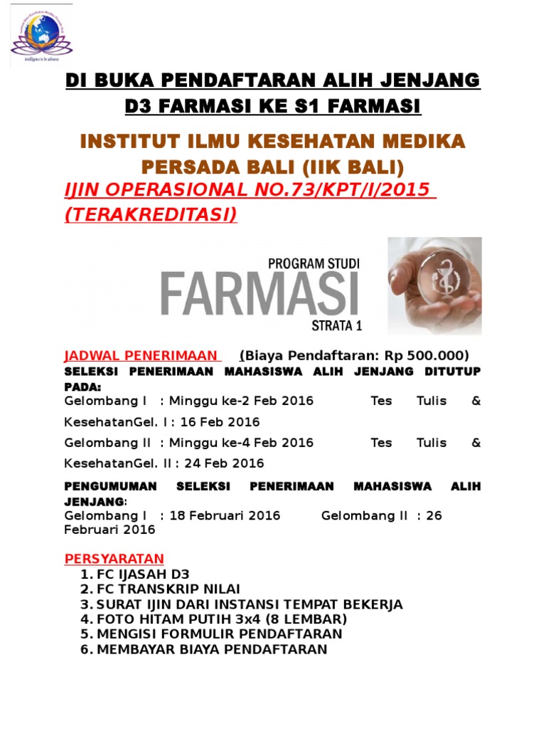 Di Buka Pendaftaran Alih Jenjang D3 Farmasi Ke S1 Farmasi