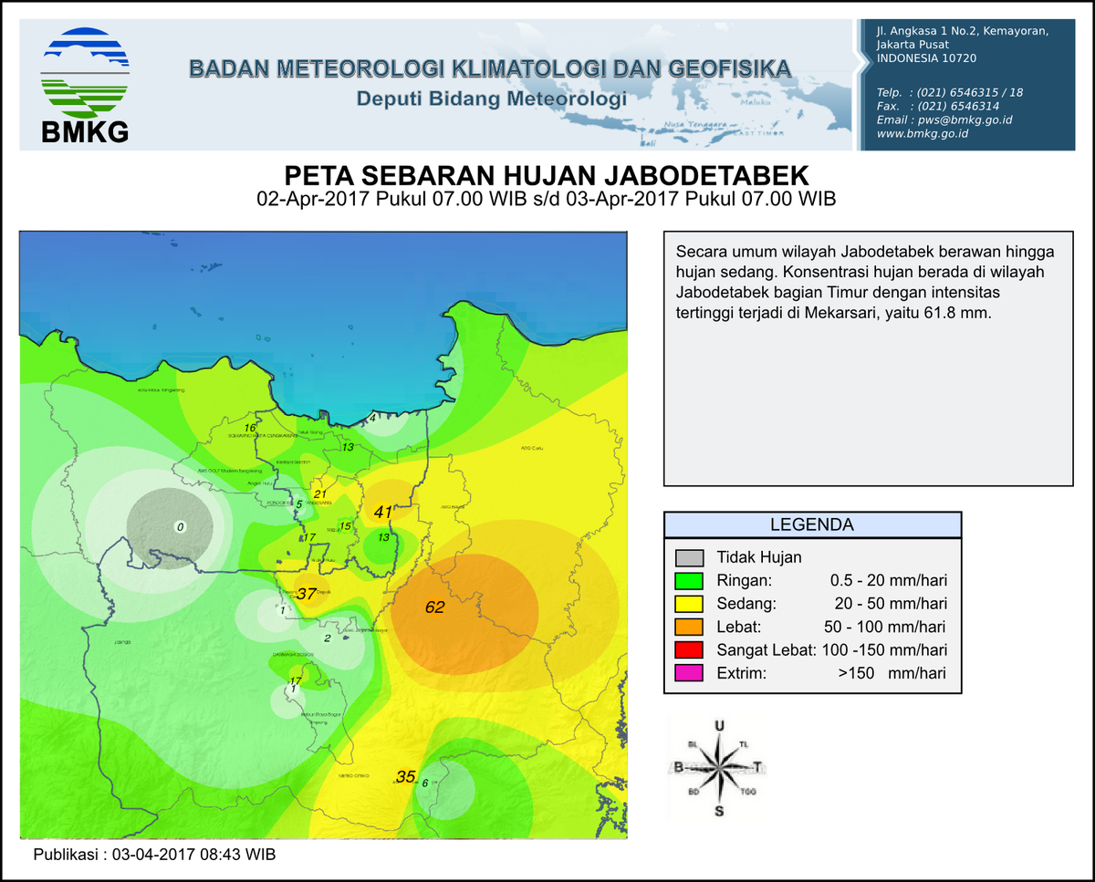 Bpbd Dki Jakarta On Twitter Peta Sebaran Hujan Jabodetabek Curah Hujan Yang Terjadi Mingg 02 April 2017 Pkl 07 00 Wib S D Senin 03 April 2017 Pkl 07 00 Wib So1 Https T Co Ia7g1fkw55