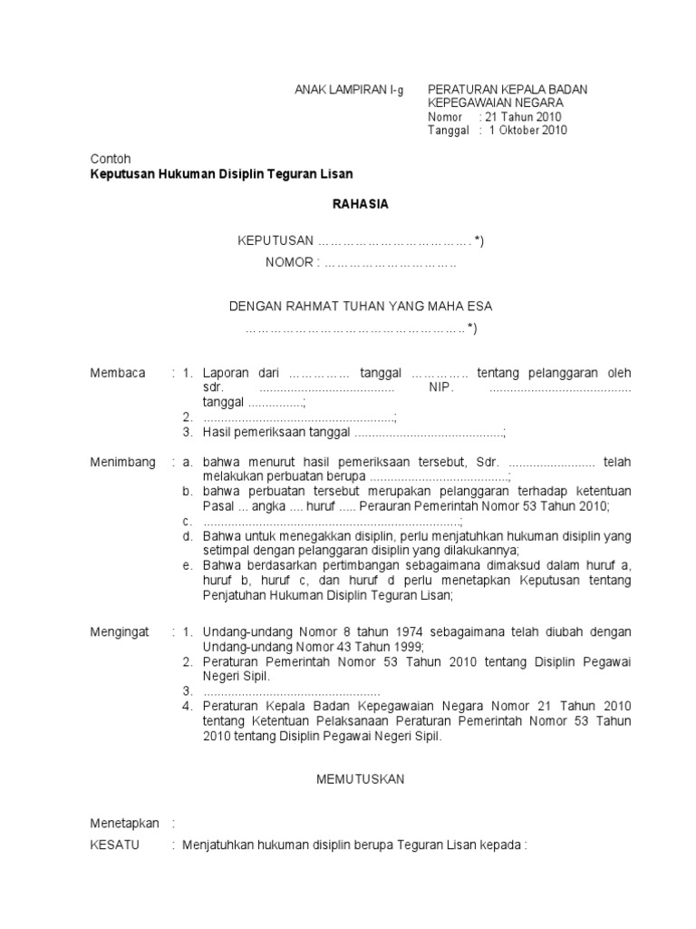Nomor 21 tahun 2010 tentang ketentuan pelaksanaan peraturan pemerintah nomor 53 tahun 2010 tentang disiplin pegawai negeri sipil dengan rahmat tuhan yang maha esa kepala badan kepegawaian negara. Simpan Simpan Perka Bkn Nomor 21 Tahun 2010 tentang ketentuan Pe. What to Upload to SlideShare SlideShare.