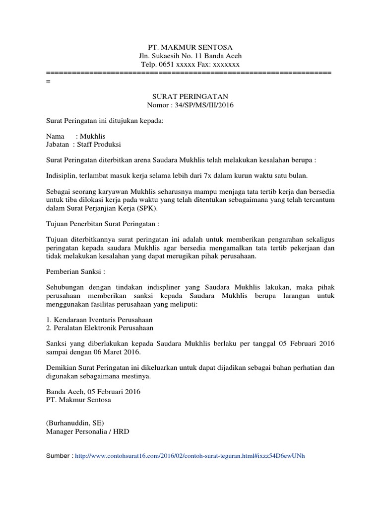 Contoh Surat Teguran Atau Surat Peringatan Sp Yang Baik Dan Benar Contoh Surat