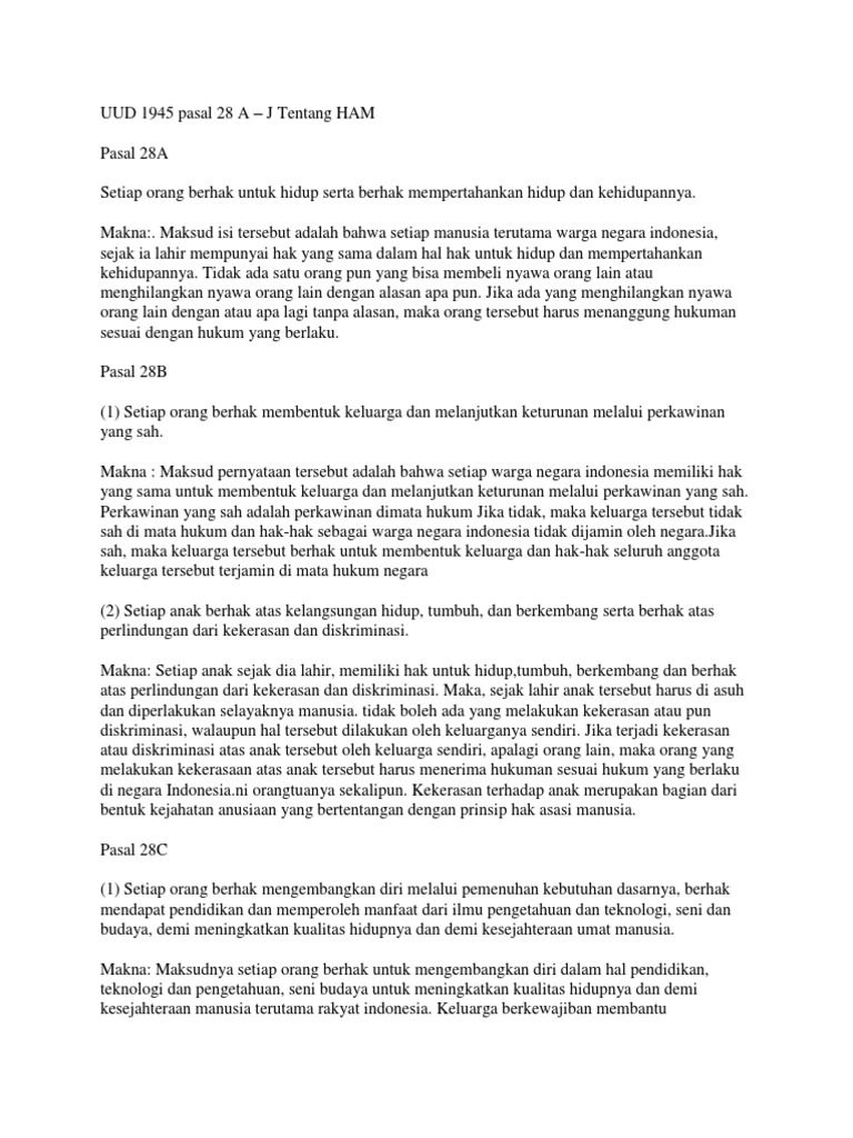 Pasal 28 A Sampai J Tentang Ham Pdf