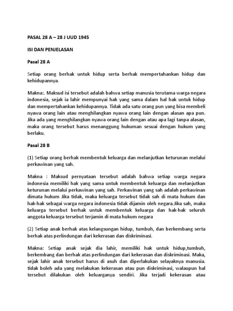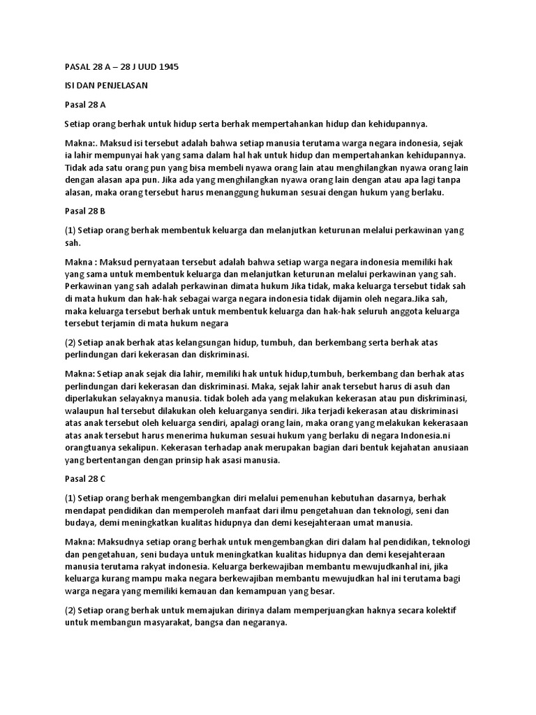Doc Penjelasan Dari Isi Uud 1945 Pasal 28 Hana Rahmi Academia Edu