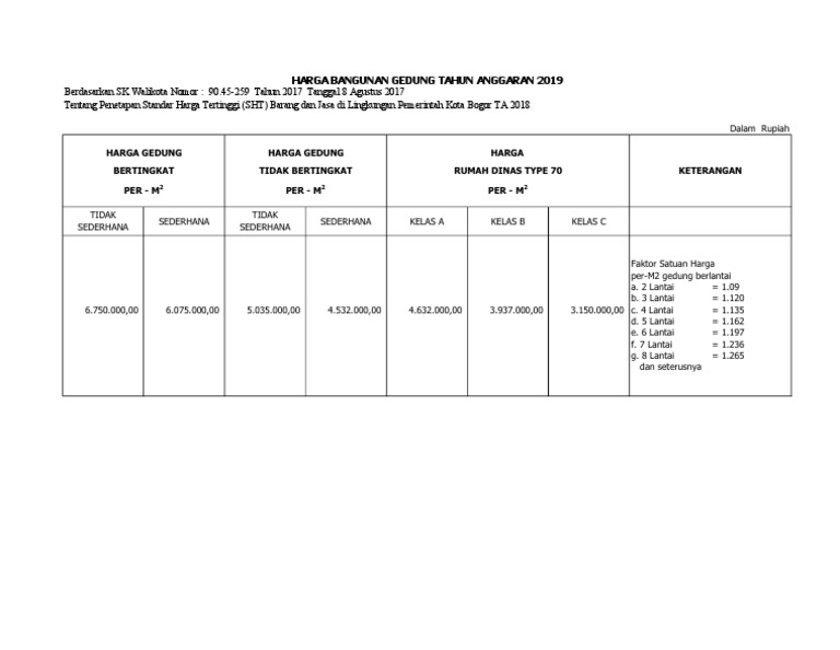 471 TAHUN 2017 1 PERBUP KAB. Pembiayaan bangunan komponen bangunan tertentu pembiayaan luasan per m2 dihitung dari luas bangunan gedung harga per m2 tidak termasuk pekerjaan persiapan pekerjaan pondasi pancang bored pile 1 m2 pekerjaan struktur rumah susun s d 6 lantai m2 1 782 052 luasan per m2 dihitung dari luas bangunan gedung harga per m2 tidak. Tetapi jika ide awalide desain dari ide sang arsitek atau desain.